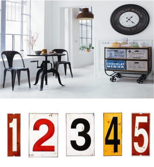 I particolari sono importanti per ricreare il perfetto mondo industriale. Scritte e numeri, così come ventilatori e grandi orologi, sono un must di questo stile. Ne puoi trovare di bellissimi da Bloomingville.