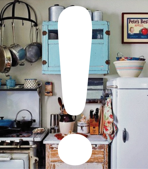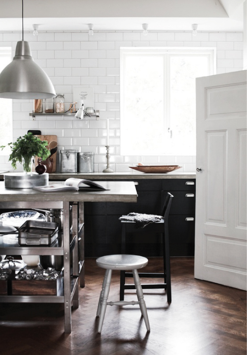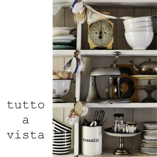 Mensole, scaffali industriali in metallo (ne trovate di svariati da Ikea), librerie usate e riciclate in modo creativo sostituiscono credenze e mobiletti. E sui ripiani tanti barattoli in vetro per contenere gli alimenti, ceste e cestini in ferro. La vecchia bilancia della nonna darà il perfetto tocco vintage.
