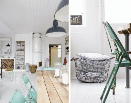 La cucina è country chic e avete paura di osare con il colore? Accostate al vostro tavolo bianco alcune sedie in legno scuro. Quella nella foto è una Thonet anni ’40; la trovate anche nel web;