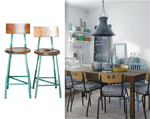 Vigore industriale ma con un tocco di romanticismo? Attorno al tavolo delle sedie pieghevoli da esterno, tutte uguali e dall’aria vissuta (il modello nella foto si rifà alla sedia disegnata da Joseph Mathieu nel 1922), oppure miscelatele con sgabelli in ferro e legno, recuperati al mercatino, che ricordano quelli che si usavano nelle vecchie fabbriche.