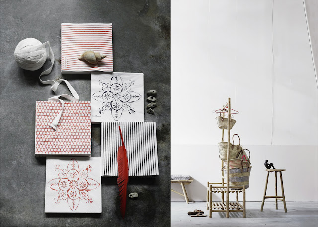 Fanno parte della collezione per la casa Tine K tessuti e mobili, oggetti in ceramica e bicchieri, cuscini, trapunte e copriletti, lampade e paralumi, piatti marocchini, specchi, cornici, tavoli, sedie, divani e tanto altro ancora.